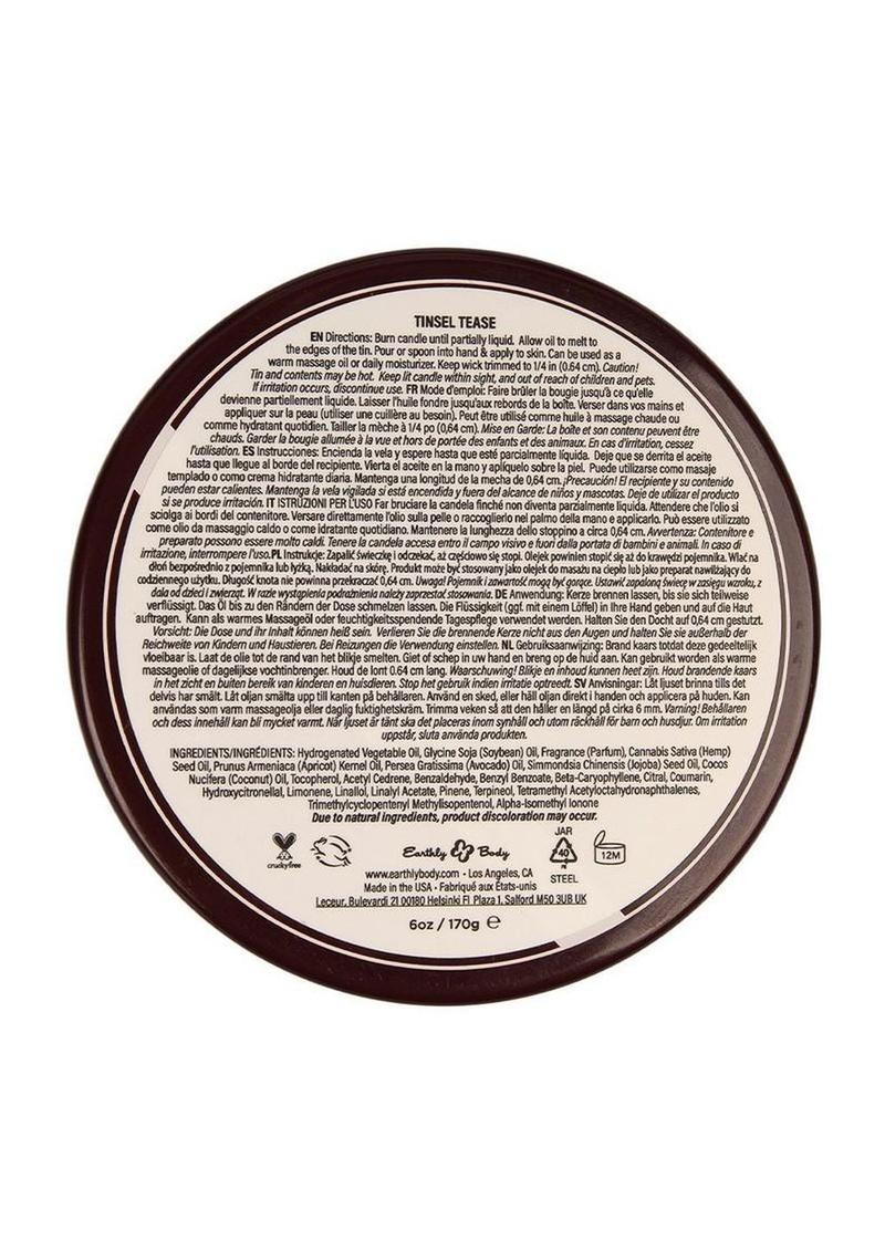 Tinsel Tease, a Limited Edition 3-in-1 Massage Candle, heats up winter massages with a lively blend of Honey, Warm Embers and Amber. Specially formulated to melt a couple degrees above body temperature, our 3-in-1 massage candles don’t just provide romantic light and fragrance – they melt into a decadent blend of natural oils that can be used as a moisturizer or for a warm massage. Hemp seed oil, the primary ingredient in these candles, has a fantastic slip factor for massage and, because it absorbs to the lipid layer of the cells, skin is left soft and moisturized, not greasy or goopy. Our holiday Candle Pre-Pack comes with an assorment of our limited edition holiday candles as well as a counter display and tester. 6oz. Vegan. THC-Free