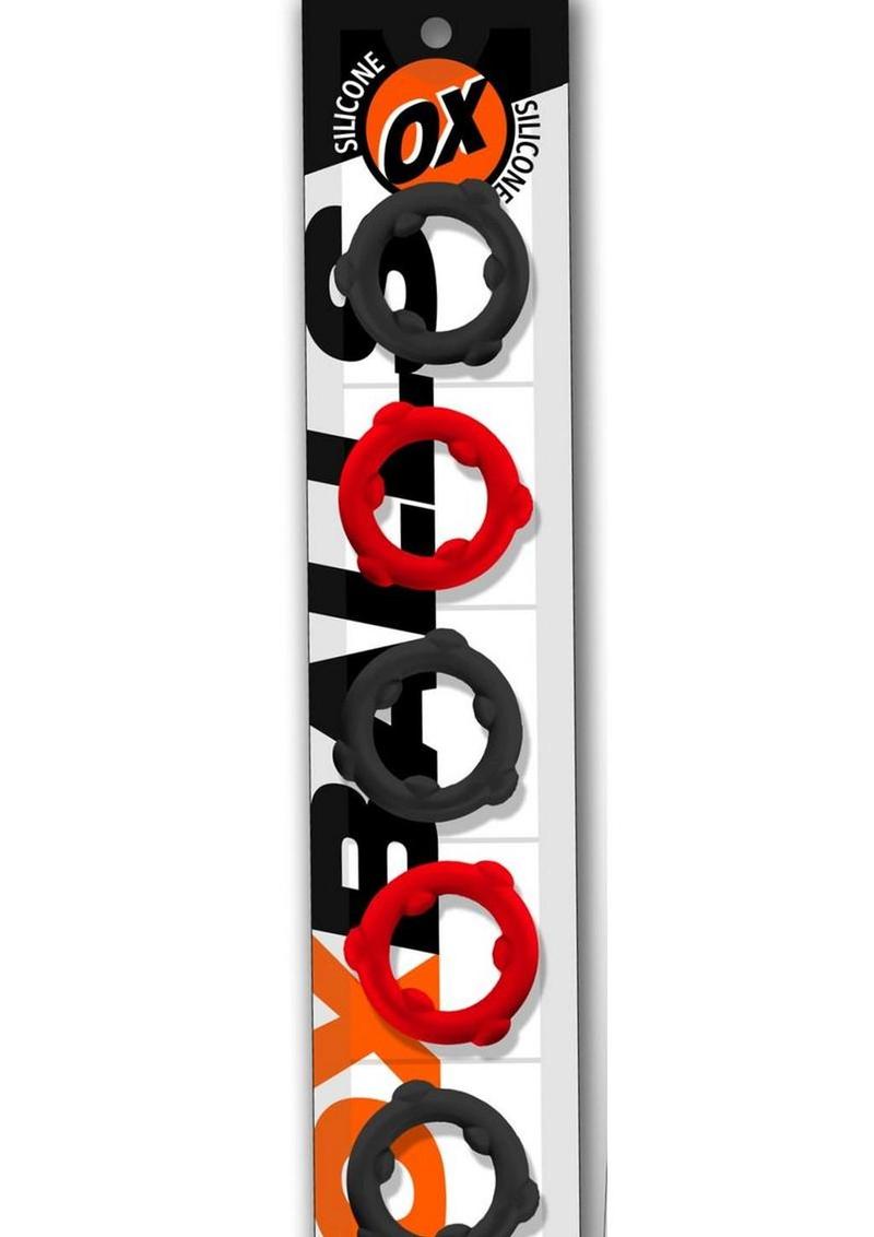 Oxballs Gearheads Silicone Spinner Cock Rings (5 Pack) – Red/Black