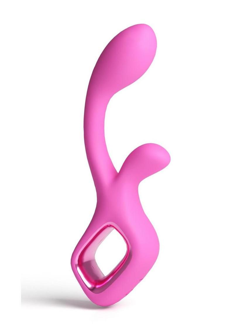 Velvet by Pretty in Pink – A sleek G-spot rabbit vibe with a contoured silhouette and firm, non-flexible design. Made from smooth silicone with ABS accents for a polished finish. Rechargeable. Waterproof – IPX 7. Suitable with all lubricants including silicone lubricant. 3 speeds / 6 functions / 9 modes.